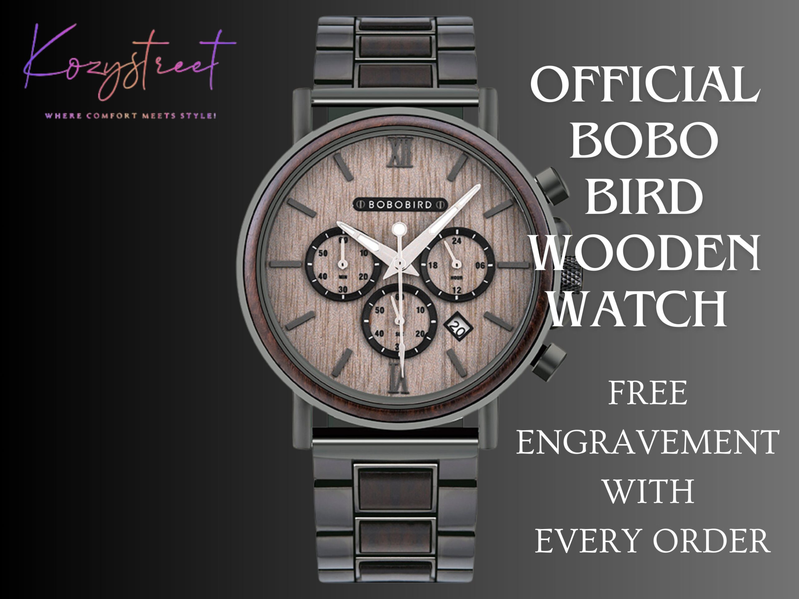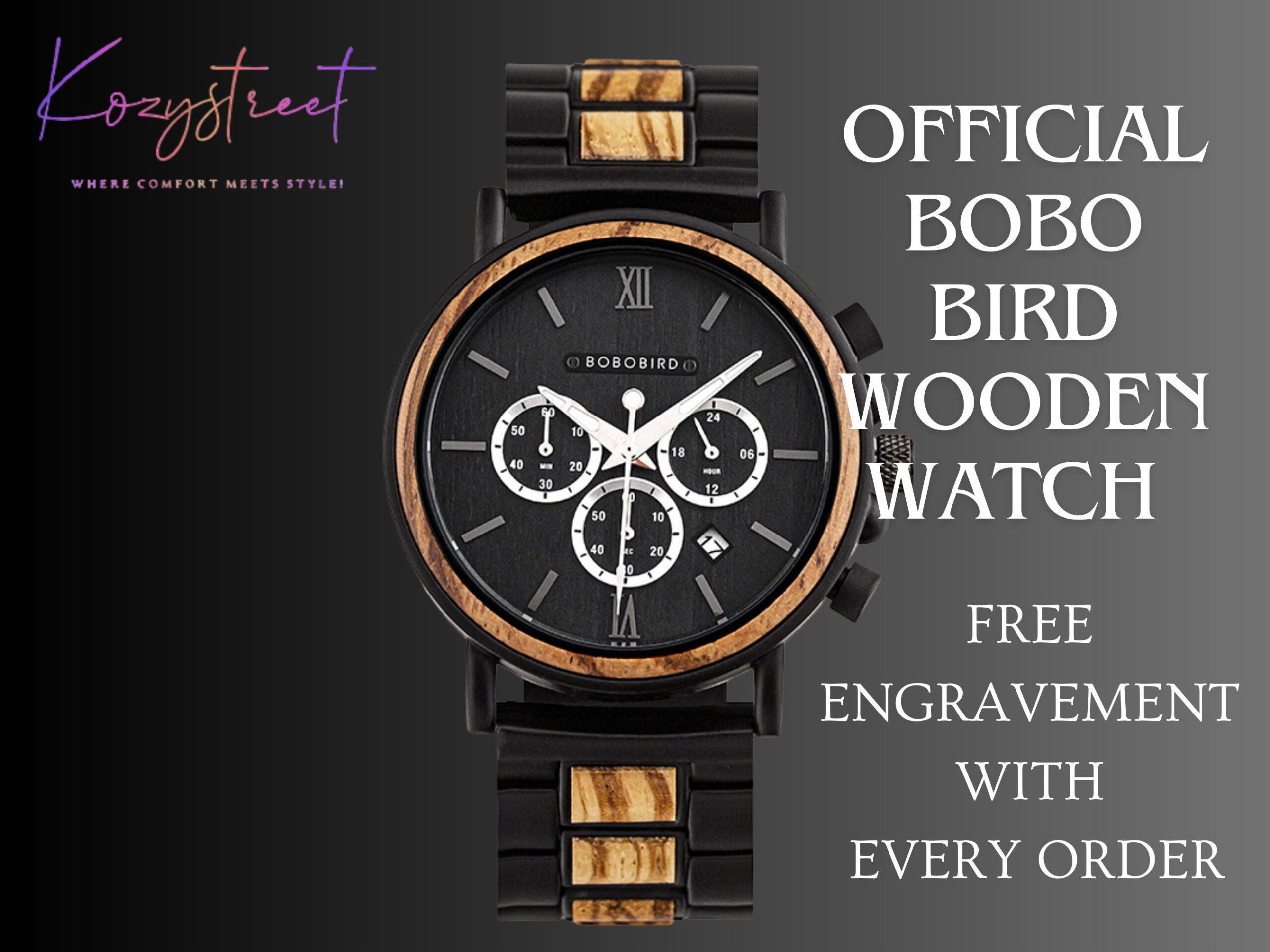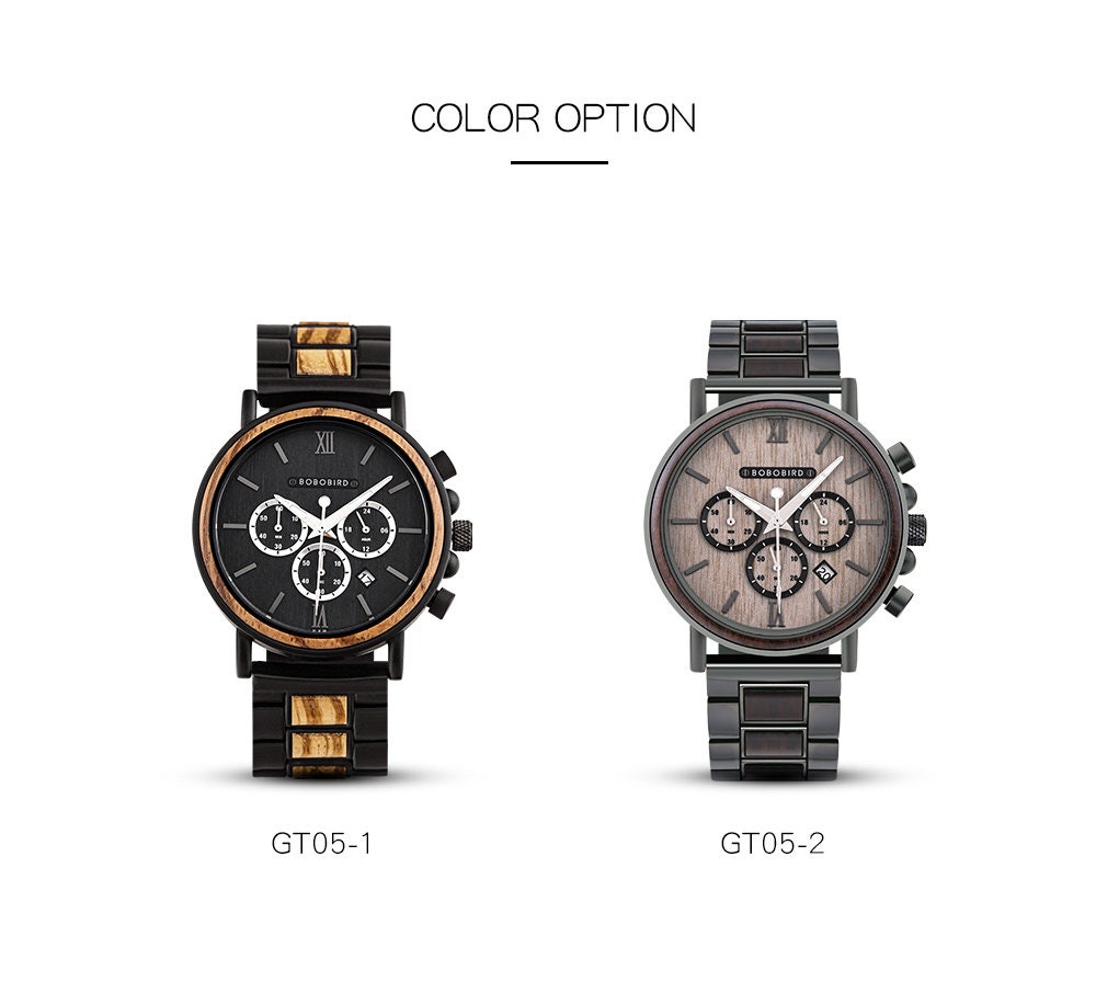 Personalization options abound with support for custom engraving of your name on the dial, back, and the included watch box. Perfect for any occasion, from weddings to birthdays, the BOBO BIRD GT050 merges craftsmanship with modern functionality.