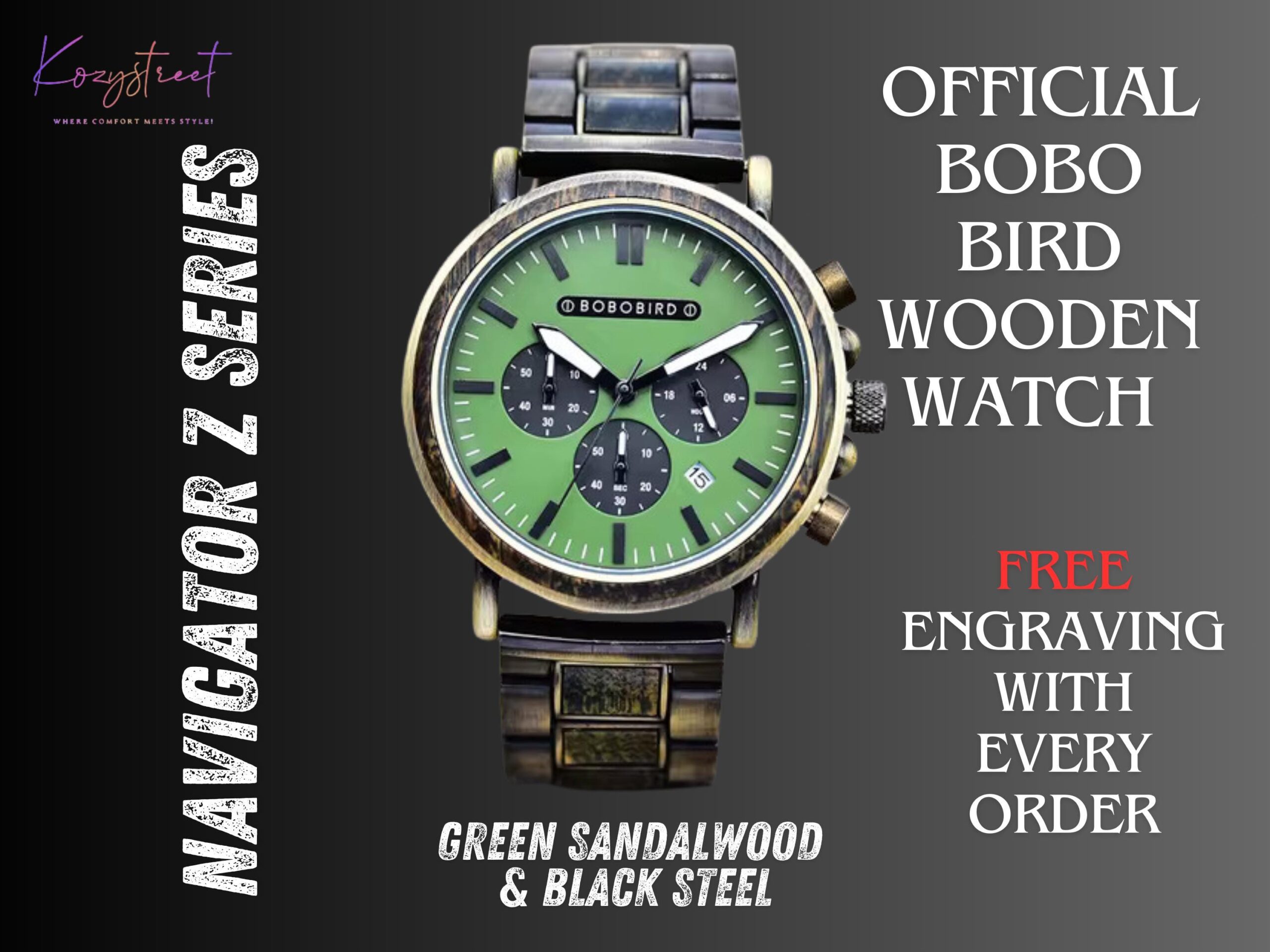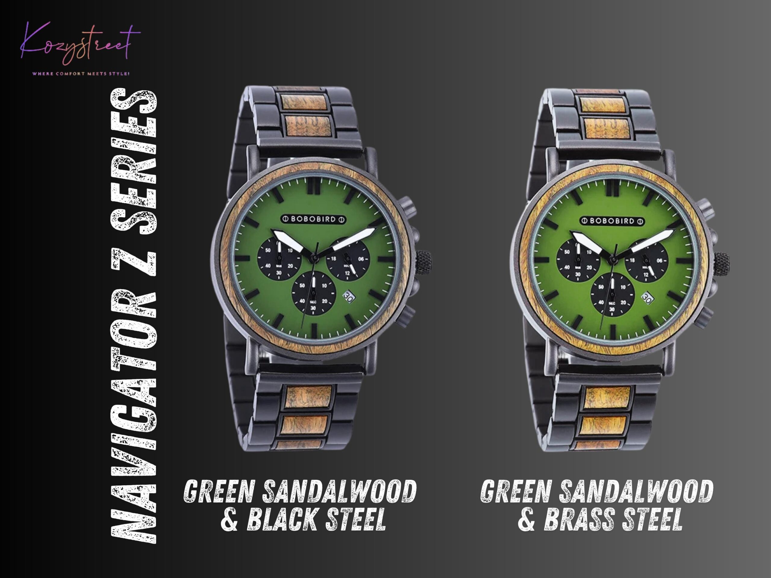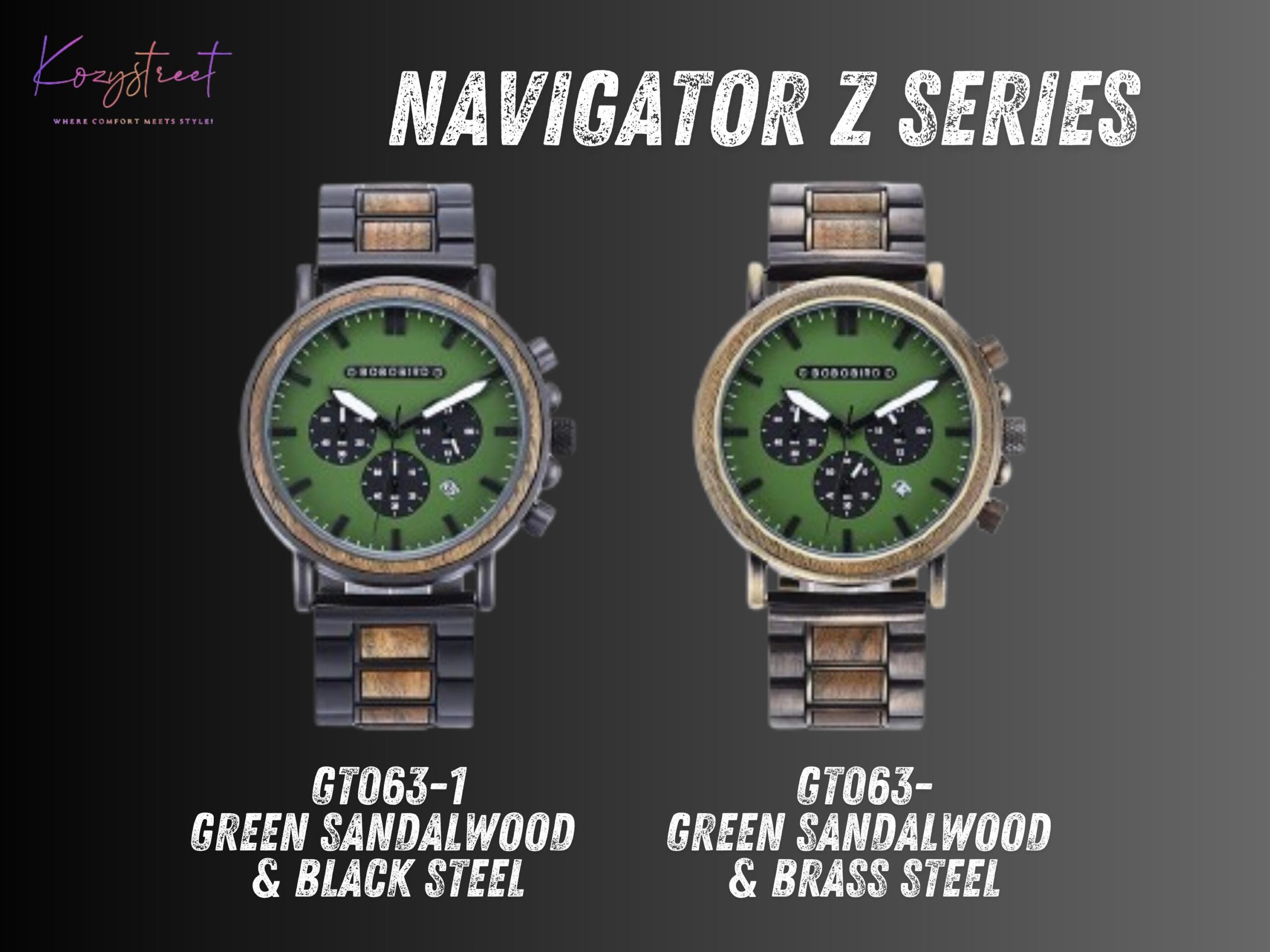 Strap: 1. Black Steel & Green Sandalwood