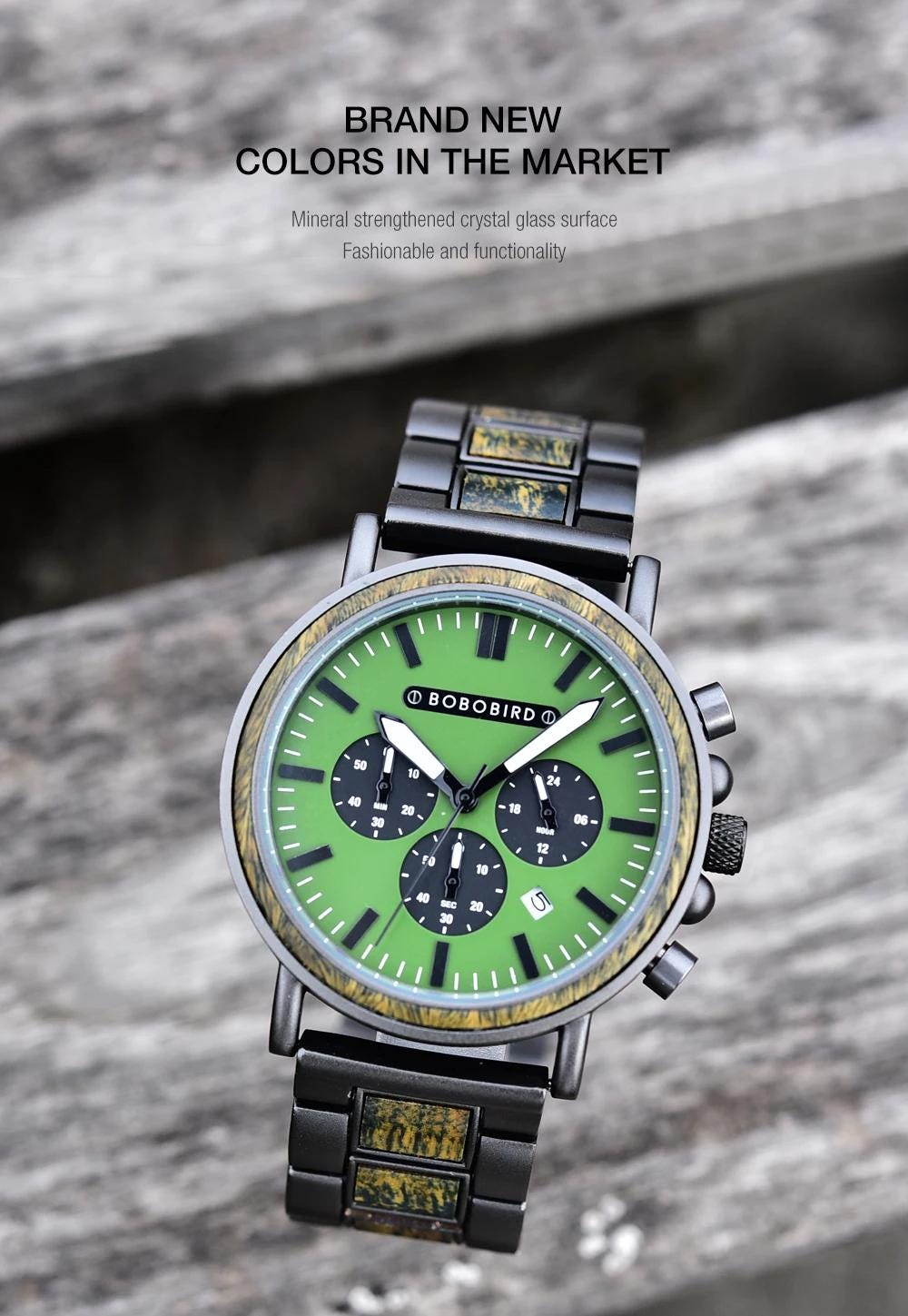Case: 1. Black Steel & Green Sandalwood (44mm)