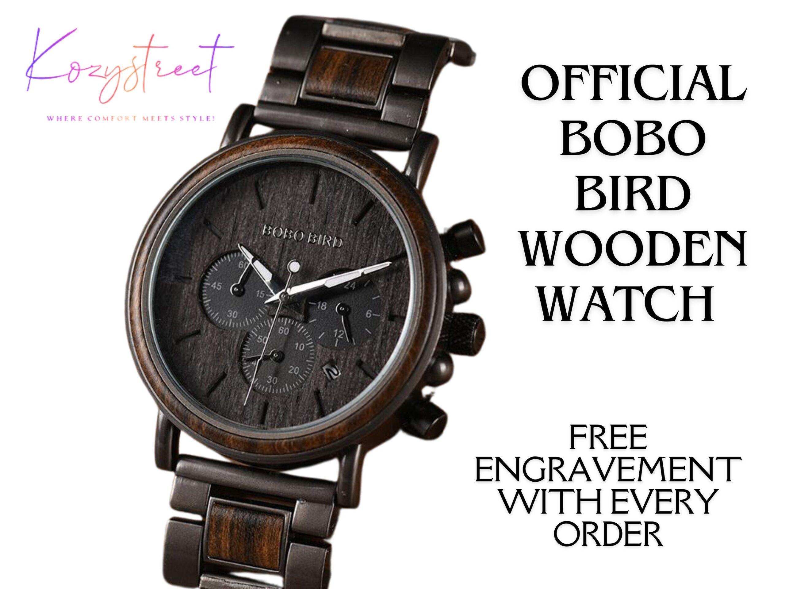 This is a genuine Wooden watch, engraved for FREE by us to make it the most unique watch on Earth!